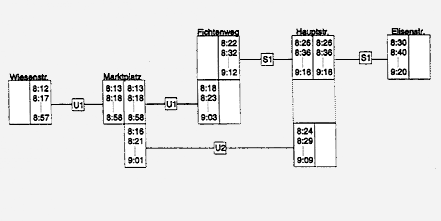 Werden mehrere Verbindungen gefunden bzw. Verbindungen über einen größeren Zeitraum gesucht, wirkt eine einfache Auflistung der Verbindungen meistens unübersichtlich. Besonders schwierig wird es, wenn eine Verbindung wegen einer Verspätung kurzfristig nicht mehr möglich ist. Für diese Fälle ist eine grafische Übersicht besser geeignet.