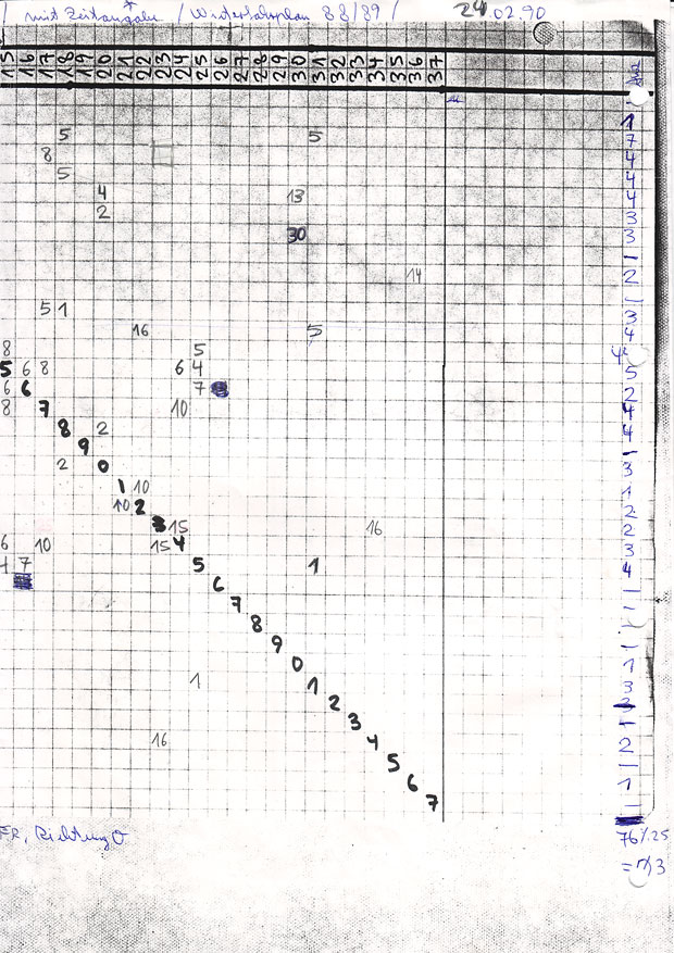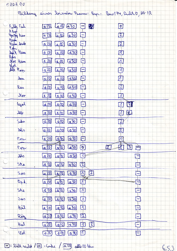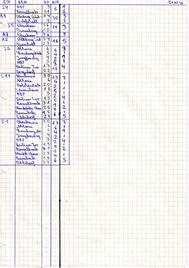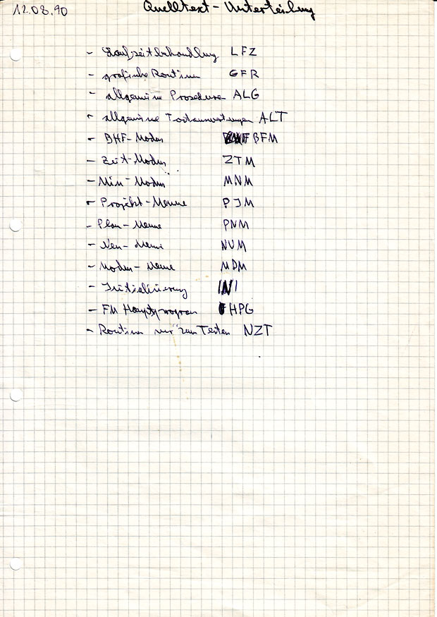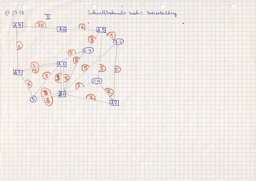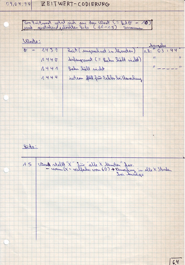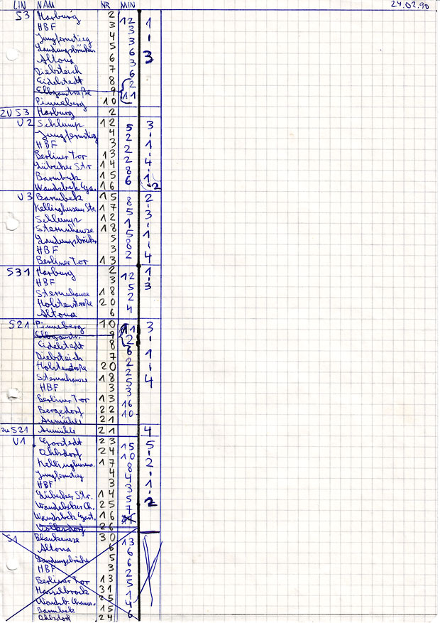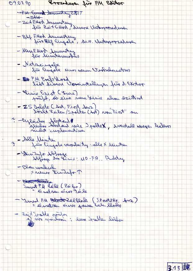 Nachfolgend finden sich die eingescannten Planungs-Unterlagen aus den Zeitraum von 1988 .- 1992 des Fahrplan-Programms. Es handelt sich allerdings teilweise eher um Notizen als um vollständige Plaunungsunterlagen. Ich programmiere vieles ohne vorher umfangreiche Planungen zu betreiben, da sich vieles erst während des Programmierens ergibt. Das kann man natürlich nur machen, wenn man alleine an einem Projekt arbeitet. Teilweise ist leider nicht mehr feststellbar zu welchen Datum einzelne Dokumente gehören. Ich habe versucht die Unterlagen nach der zeitlichen Reihenfolge zu ordnen.