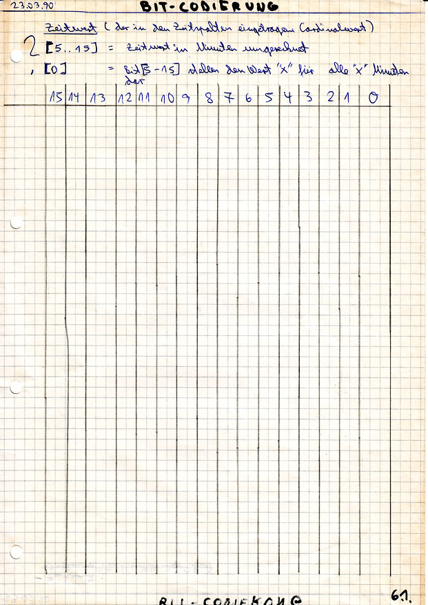 Hier wird definiert wie die Werte im Fahrplan-Editor intern codiert werden bzw. gespeichert werden.Dabei wird ein 16-Bit-Wert benutzt. Die ersten 11 Bits enthalten den Zeitwert der folgendermaßen codiert wird: