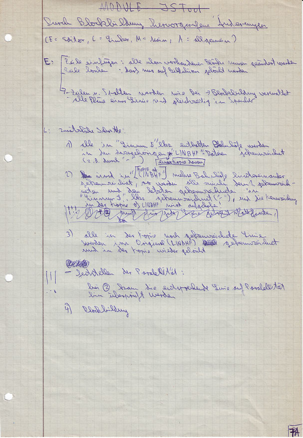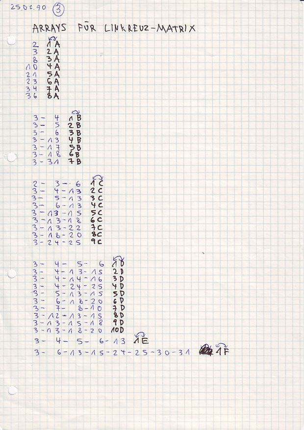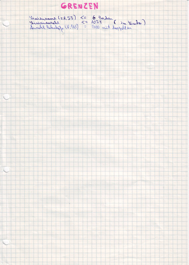 Dieses Blatt enthält nur kurze Notizen. Ich nehme an dass ich diese und die folgenden Blätter während der Programmierung der Amiga-Version angefertigt habe.