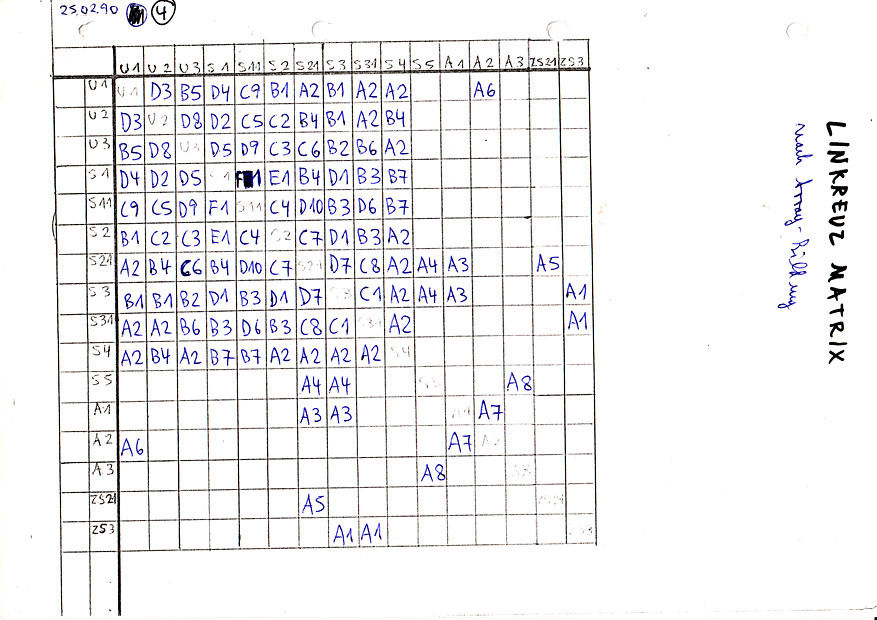 So sieht nun die Linien-Kreuz-Matrix mit der neuen Kennzeichnung aus: